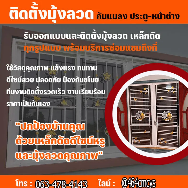 ลดความเสี่ยงต่อการได้รับบาดเจ็บจากพิษหรืออันตรายจากพวกสัตว์เหล่านั้นอีกด้วย ไปจนถึงการป้องกันฝุ่นละออง สิ่งสกปรกต่างๆ หรือกรณีที่ลูกค้ามีมุ้งลวดเก่า เสียหาย การรับซ่อมมุ้งลวดก็ช่วยประหยัดต้นทุน ไม่ต้องเสียเงินติดตั้งใหม่ทั้งหมดให้สิ้นเปลืองโดยใช่เหตุ การันตีความปลอดภัยด้วยวัสดุคุณภาพสูง เช่น งานเหล็กดัดอิตาลี เกรดพรีเมี่ยม แต่ราคาไม่แรงอย่างที่คิด คุ้มค่าทุกการลงทุนแน่นอน